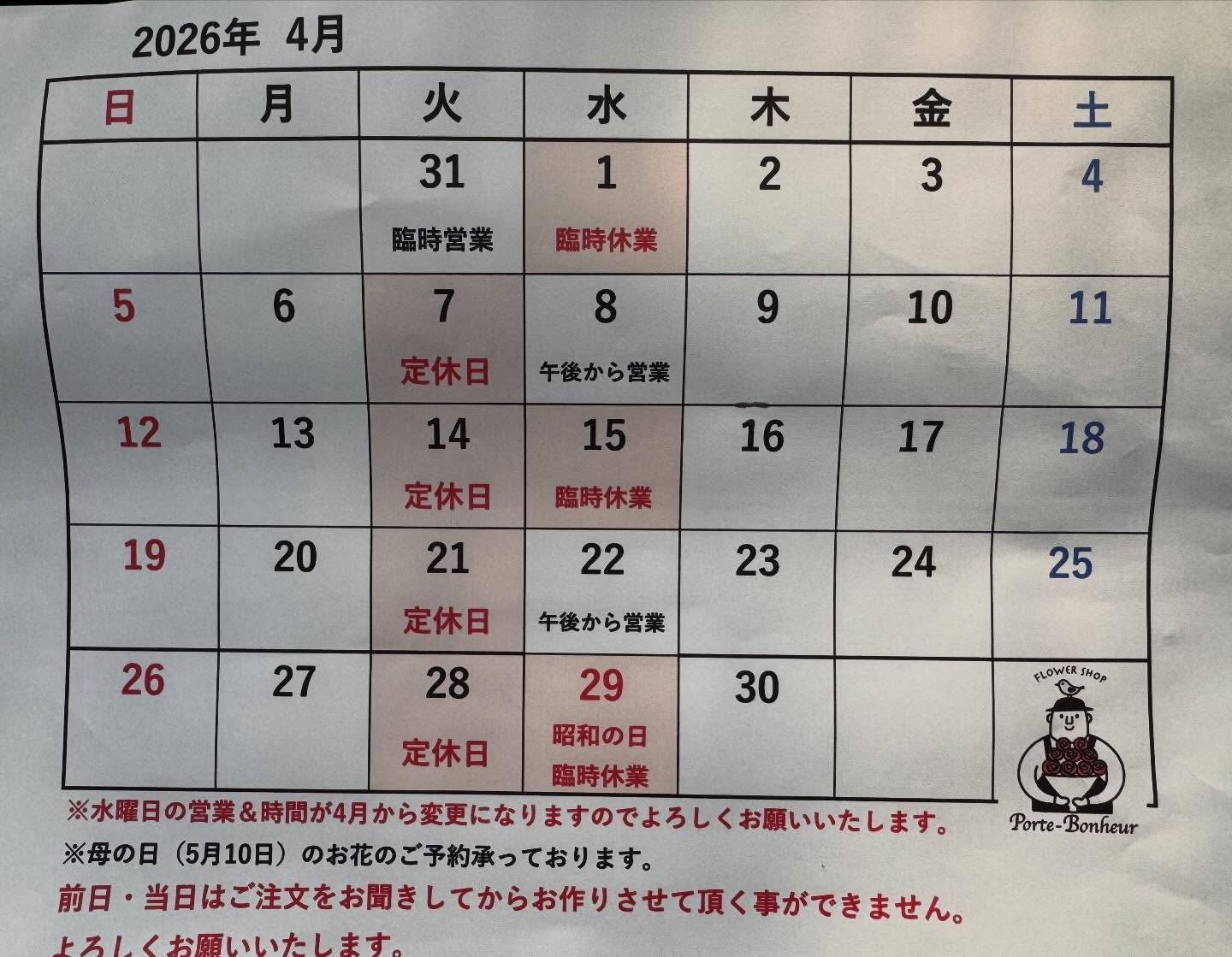 2026 年 4 月 1 日公開 こんにちは! #箕面 #花屋さん #山麓線 #粟生外院 #営業カレンダー こんにちは!いつもありがとうございます?♀️やっとバタバタの3月も終わり本日から4月!この2.3月とお断りさせて頂いた皆様 大変申し訳ございませんでした?また機会がございましたら宜しくお願い致します?♀️4月から水曜日のお休みの日が入ります。暫くこの体制で参りますのでご面倒おかけしますがよろしくお願い致します?♀️心機一転 頑張ります‼️#箕面#花屋さん#山麓線#粟生外院#営業カレンダー